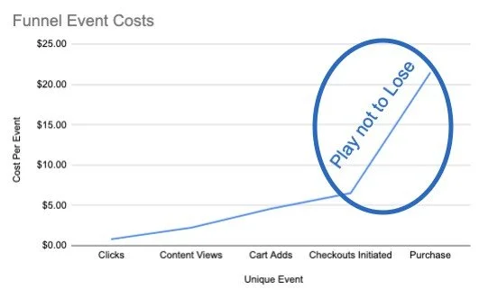 Seeing an exponential increase in CPA after CUCA indicates that your strategy needs to be “Playing Not to Lose.” Something is spooking customers from completing a purchase.